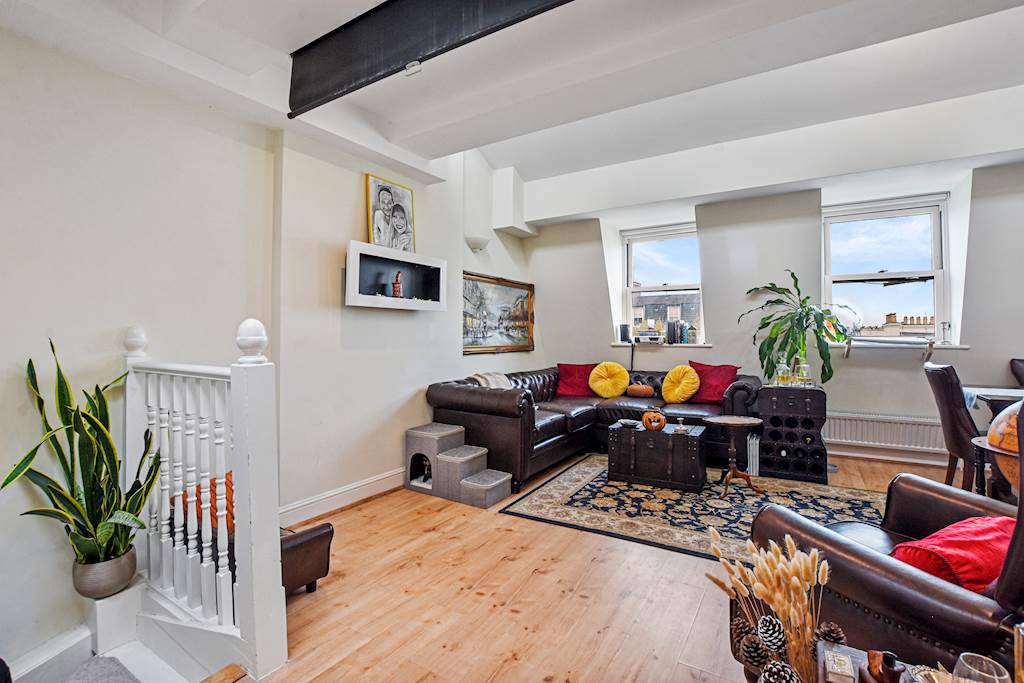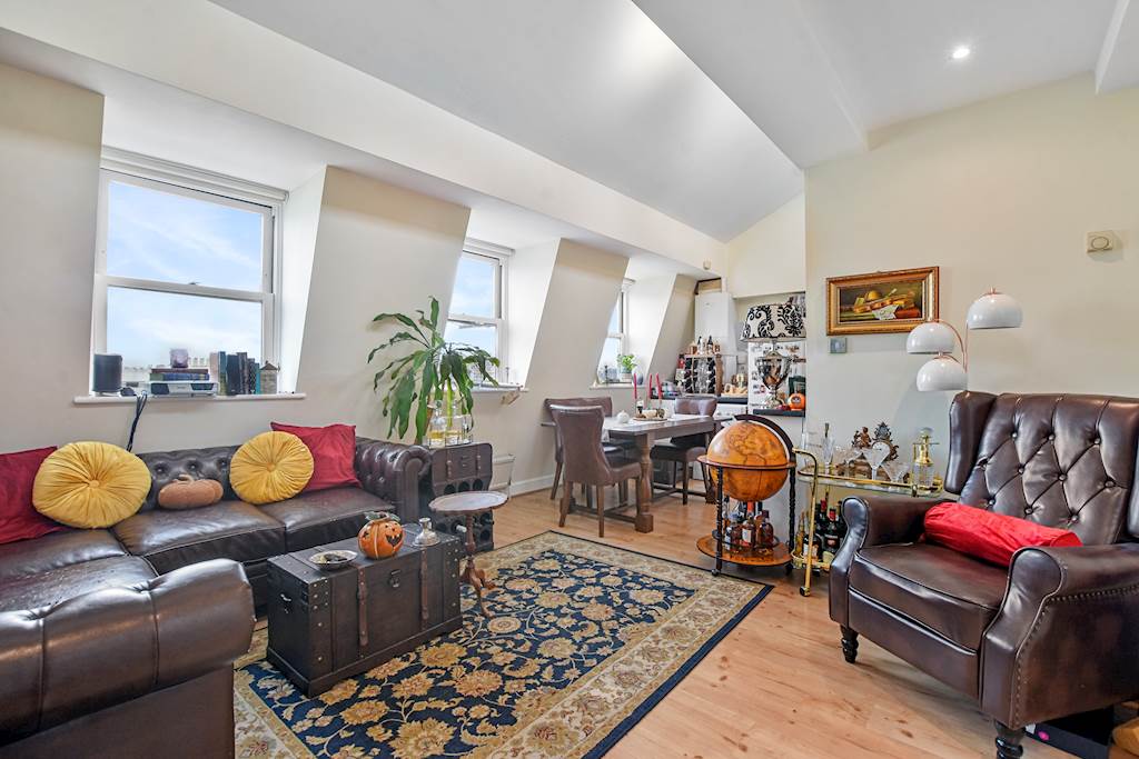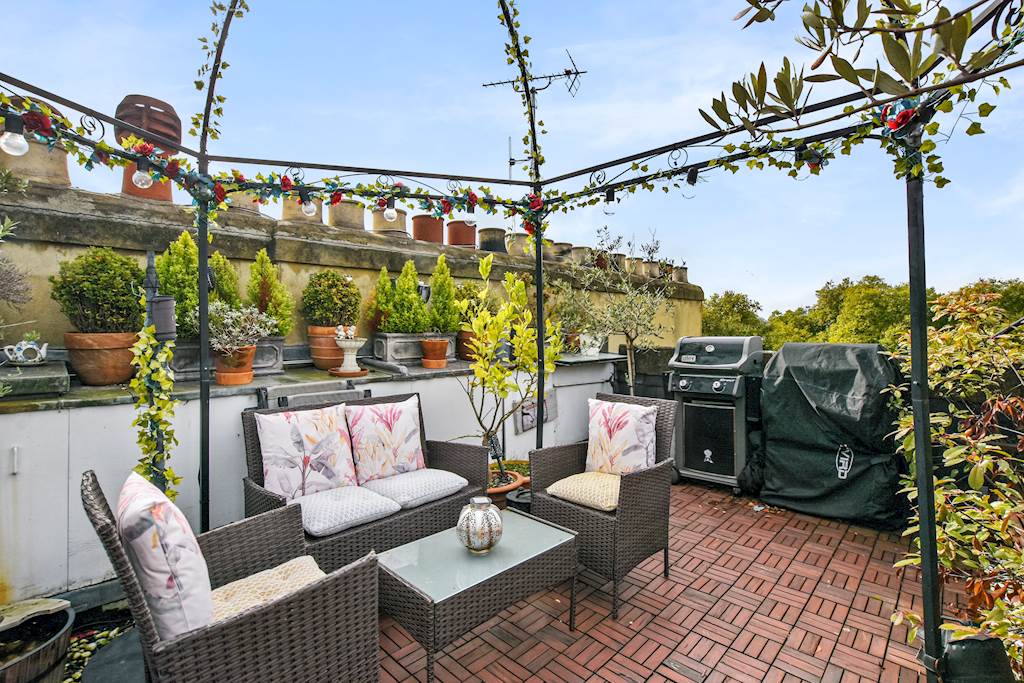 Extremely light 2 bedroom top floor flat Expansive open-plan reception room Lovely master bedroom with en suite bathroom Modern well equipped kitchen 2nd bedroom with French doors opening onto the Balcony Good sized Roof Terrace with views over London Excellent location, close to amenities and transport links Generous storage space